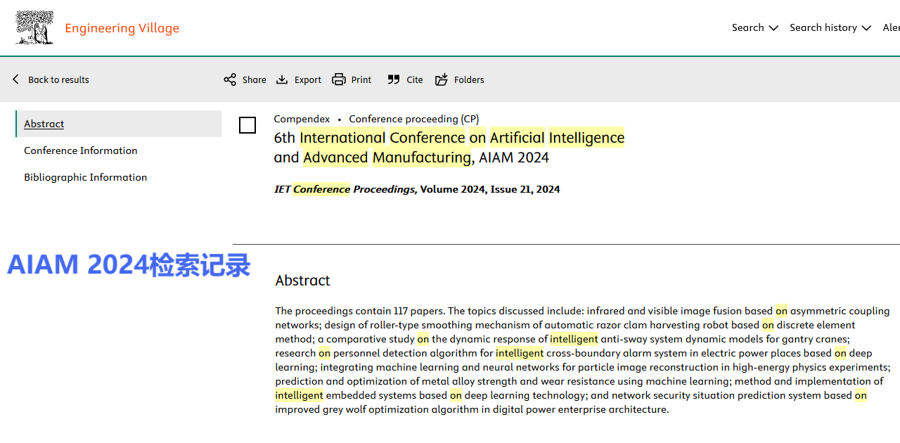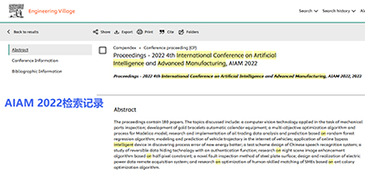 👍 AIAM会议论文集已连续多届被EI收录↓↓↓