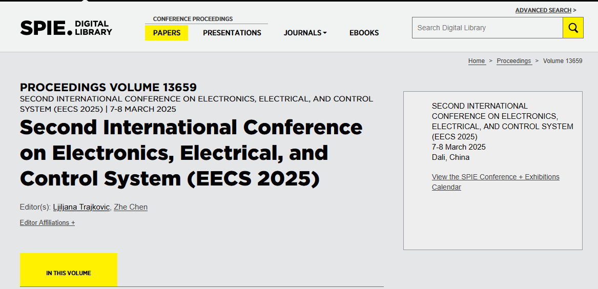 📢 EECS 2026 已获得SPIE出版支持!