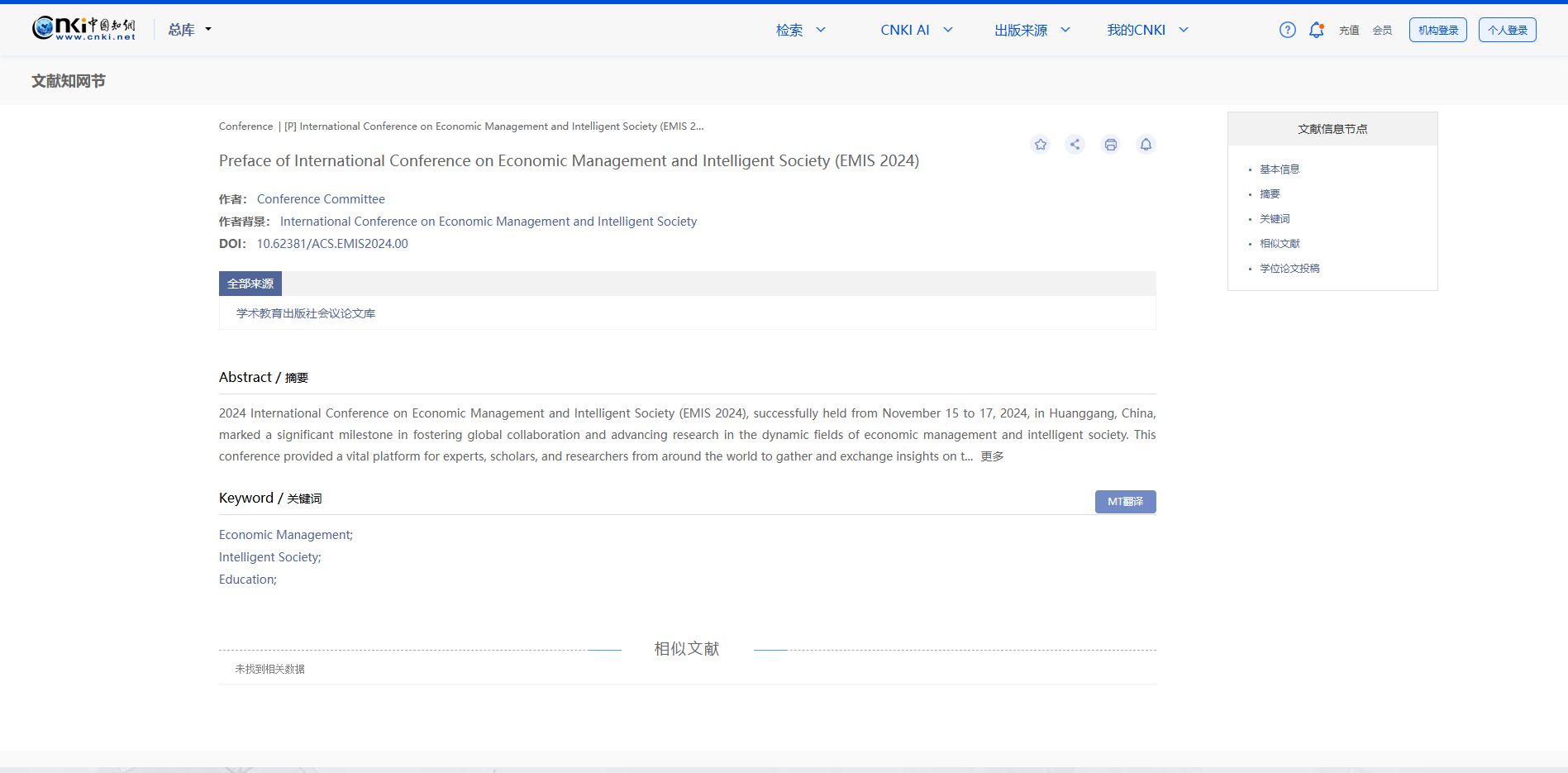 第三届经济管理与智能社会国际会议(3rd International Conference on Economic Management and Intelligent Society)将于2025年3月20-21日在郑州召开。本届会议由国际应用科学与技术协会(IAAST)主办,主题为“经济管理与智能社会”。会议旨在为来自国内外高等院校、研究机构及各企事业单位的专家学者提供一个展示最新科研成果、促进全球合作的平台。大会诚邀国内外高校、科研机构的专家学者及相关人士参会交流,共同探讨前沿技术,洞察行业发展趋势,并推动学术成果的产业化合作。