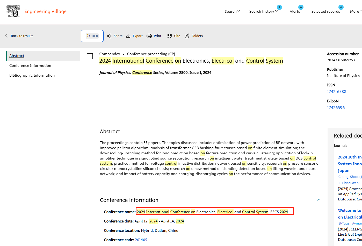 第二届电子、电气与控制系统国际会议(EECS 2025)