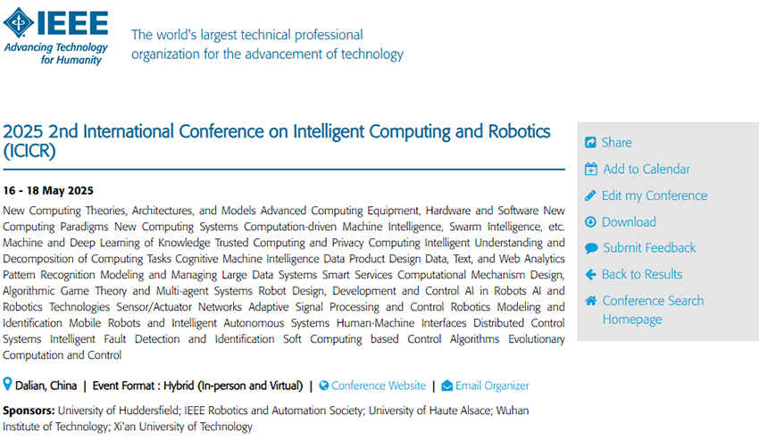 🔥 ICICR 2025已列入IEEE官方会议列表(会议编号:65456)!