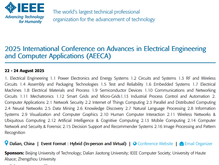 📢 AEECA 2025已进入IEEE官方会议列表(会议编号65693)