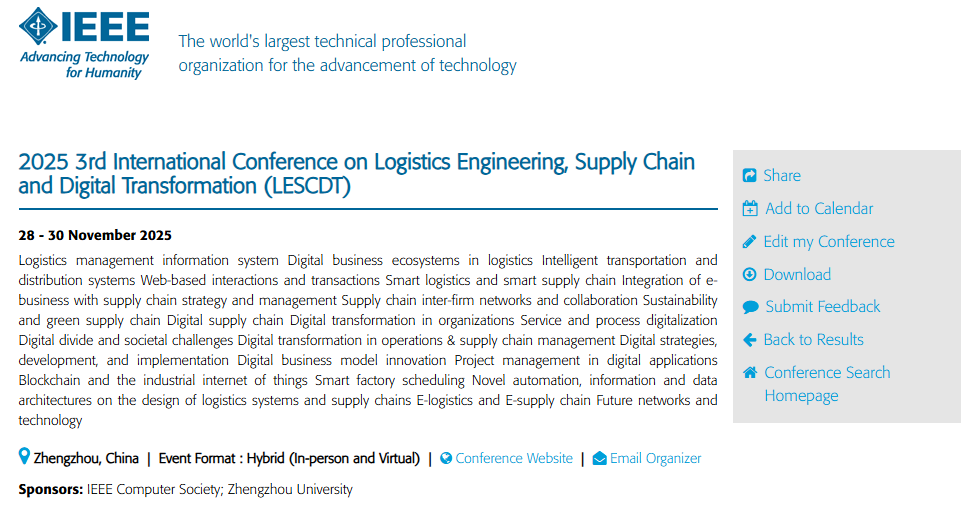 第三届物流工程、供应链与数字化转型国际学术会议(LESCDT 2025)