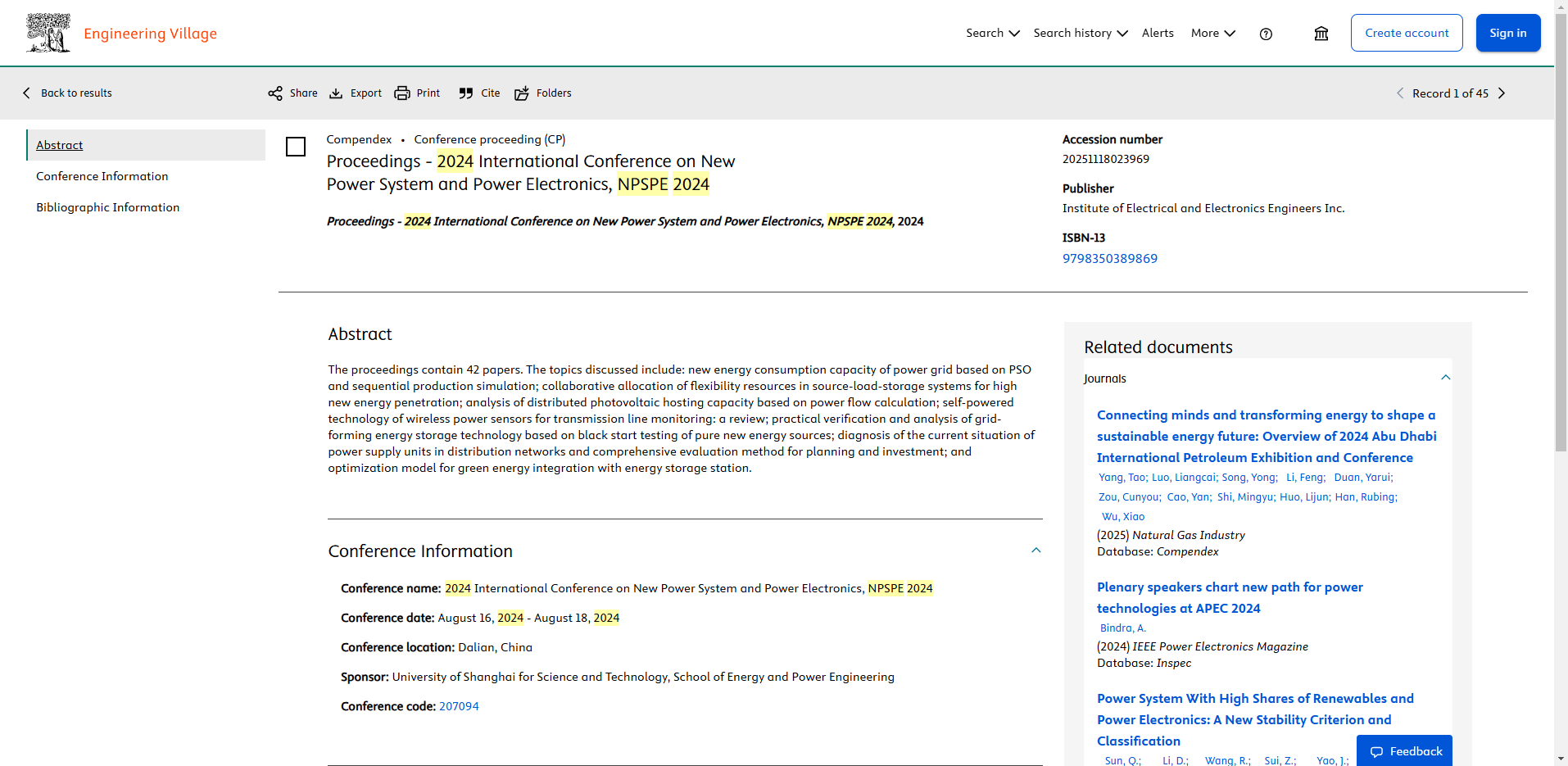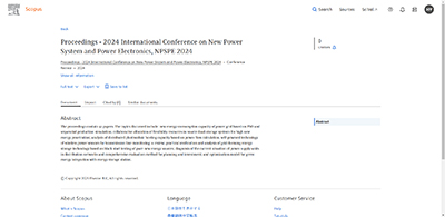 Publication: NPSPE 2024 ![]() | EI: NPSPE 2024 ![]() | Scopus: NPSPE 2024 ![]() |